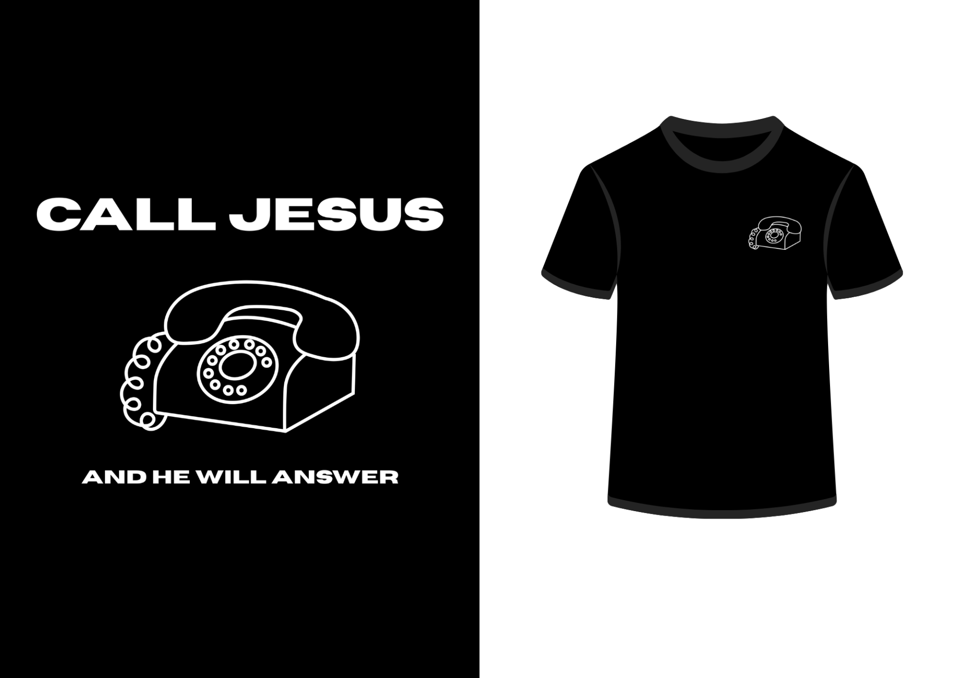 Het model is 170 cm en draagt het "Call Jesus" T-shirt in maat S, voor een oversized look.